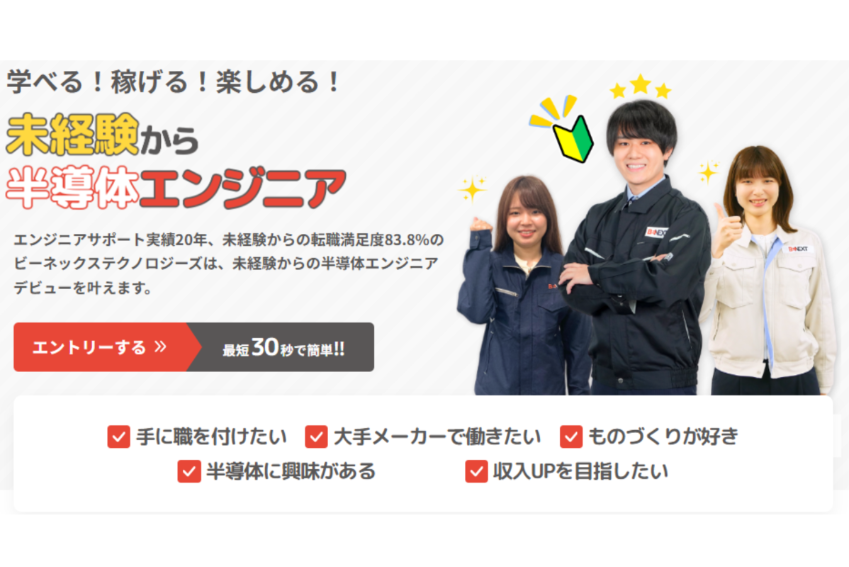 その他、寮・社宅制度、家賃補助などの福利厚生も手厚く、「半導体エンジニアに挑戦したい」という方の転職を手厚くサポートしていますので、興味がある方は以下ページをチェックしてみてくださいね!