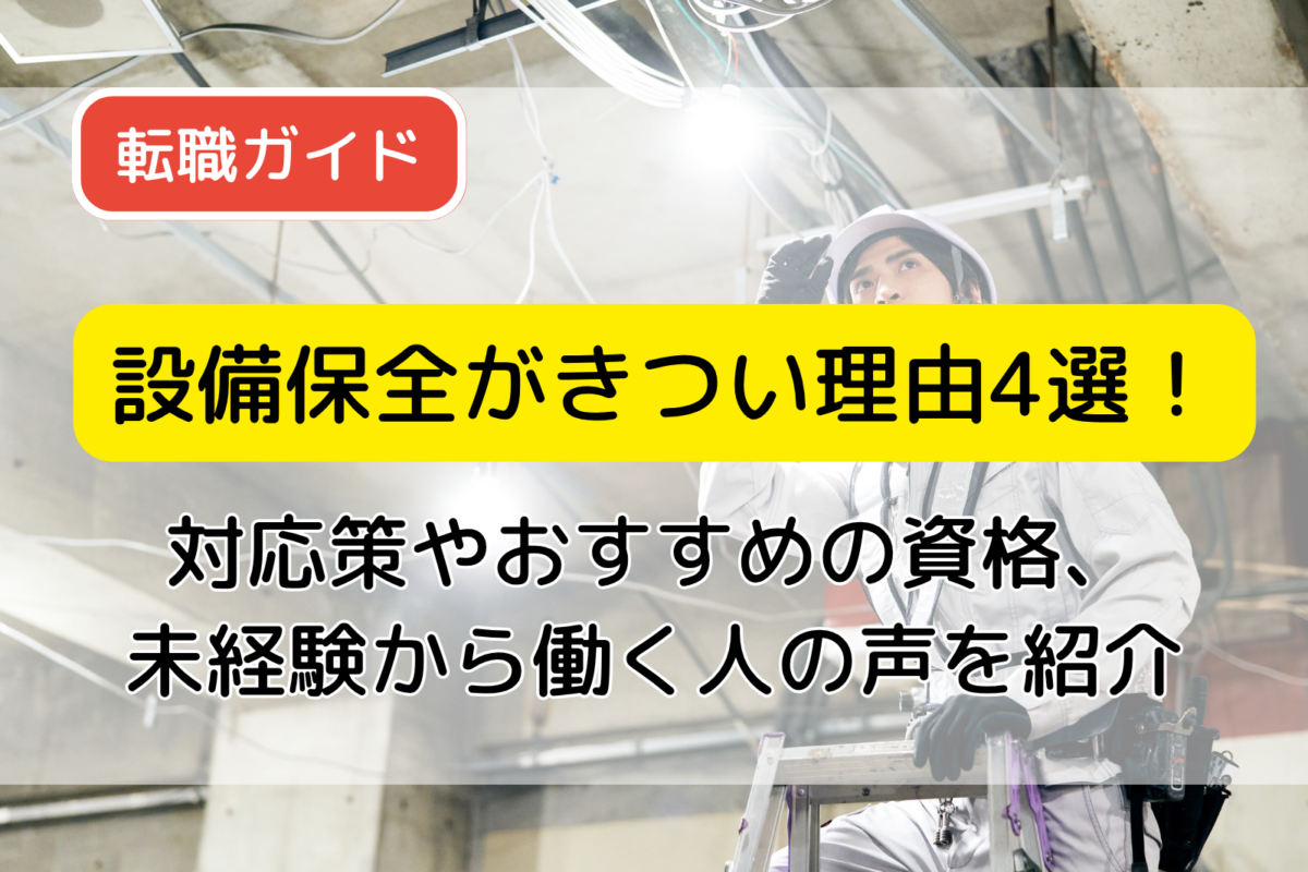 - 設備保全がきつい理由4選!対応策やおすすめの資格、未経験から働く人の声を紹介